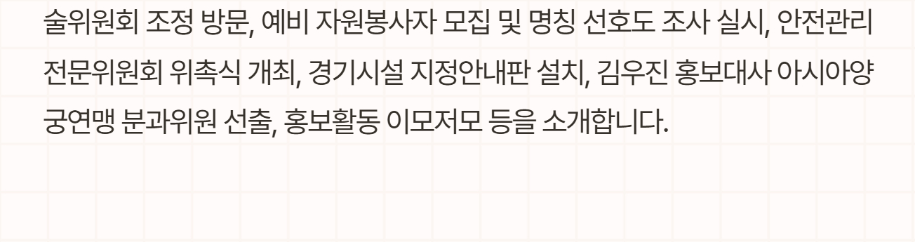 뉴스레터 10월호_공식상품화 협약부터 전국체전 참관까지, 대회 준비 ‘가속화’