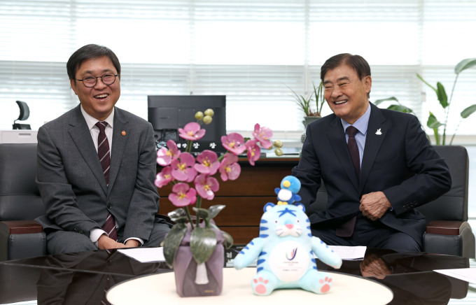 최휘영 문화체육관광부 장관이 1월 19일 조직위를 방문했습니다. 이번 방문은 최 장관의 신년 행보의 일환이라는 점에서 2027 충청 U대회가 범국가적 행사로 높은 비중을 차지하고 있음을 알 수 있었습니다.