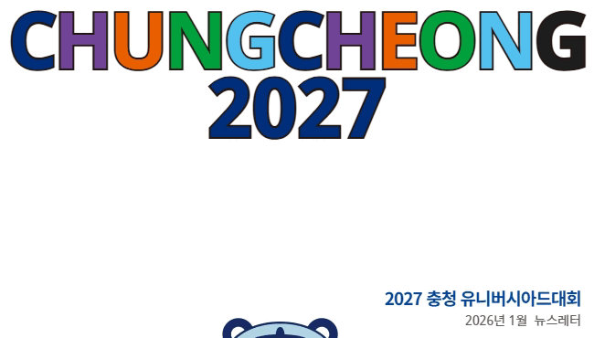 이번 호는 홍보대사 4인방의 희망찬 새해 인사로 시작합니다. 최휘영 문체부장관이 조직위를 방문해 2027 충청 U대회가 국가적 행사로 치러질 수 있도록 범정부 차원의 지원을 다짐했고, 장유정 영화감독을 대회 개폐회식 총감독으로 위촉했습니다. 아울러 미국선수단의 공식 첫 사전 방문, 제3차 위원총회 개최, 경인교대의 헬시캠퍼스 최고등급 획득 소식도 담았습니다. |