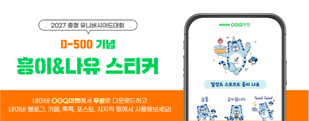 조직위는 대회 개최 D-500일을 기념해 마스코트 ‘흥이&나유’ 스티커를 3월 19일부터 네이버를 통해 1년간 무료 배포 중입니다. 이번 이벤트는 대회 개막 500일을 앞두고 전 국민의 관심과 응원으로 성공적인 개최를 기원하고자 마련되었습니다.
